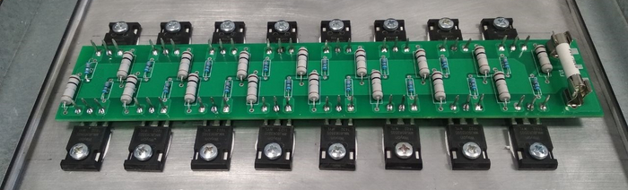 Ток – для тестирования блока питания надо 55А. Поэтому так, чтобы было интересно и потом - а пусть будет 100А. Транзисторов на три киловатта будет явно большое количество, поэтому сотню ампер они полюбому должны давить.
