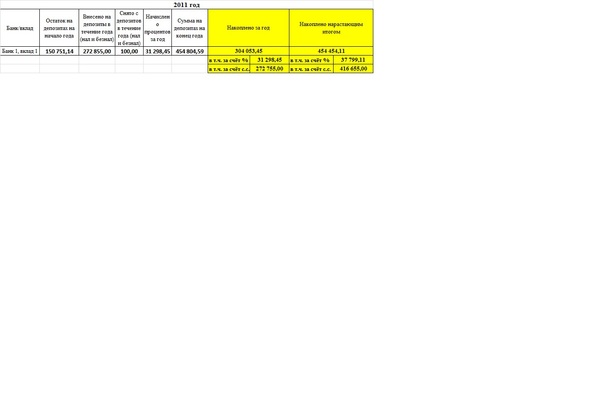 Результат накоплений за 2011 год и накоплений нарастающим итогом за 2 года приведён в таблице ниже.