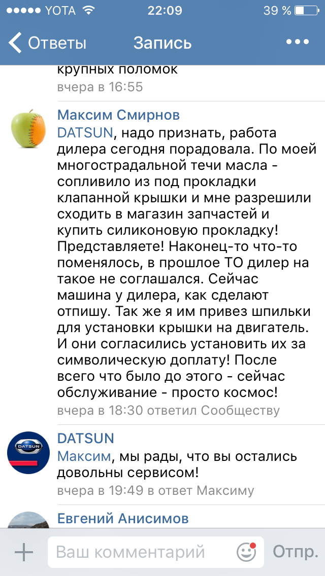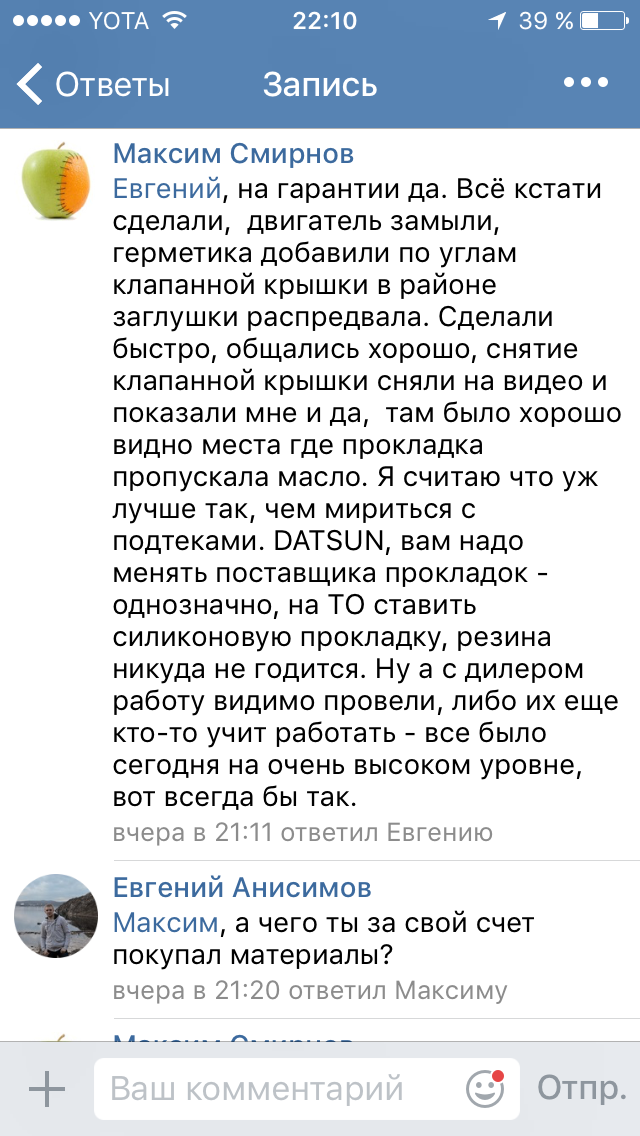 Вот так описывает свое очередное ТО олин из "счастливых владельцев" Датсун)))
