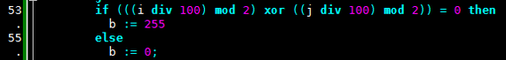 Для этого нам надо просто "двигать" координату перед передачей в делитель (j div 100) mod 2