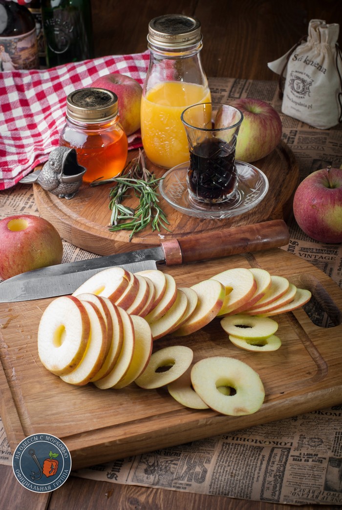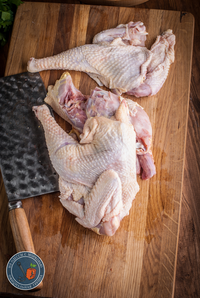 - Мясо. Это может быть баранина или говядина, цельная курица или утка. Или отдельные их запчасти- простор для фантазии тут велик. Я по случаю прикупил двух домашних цыплят грамм по 600 каждый. - 2 кисло-сладких яблока