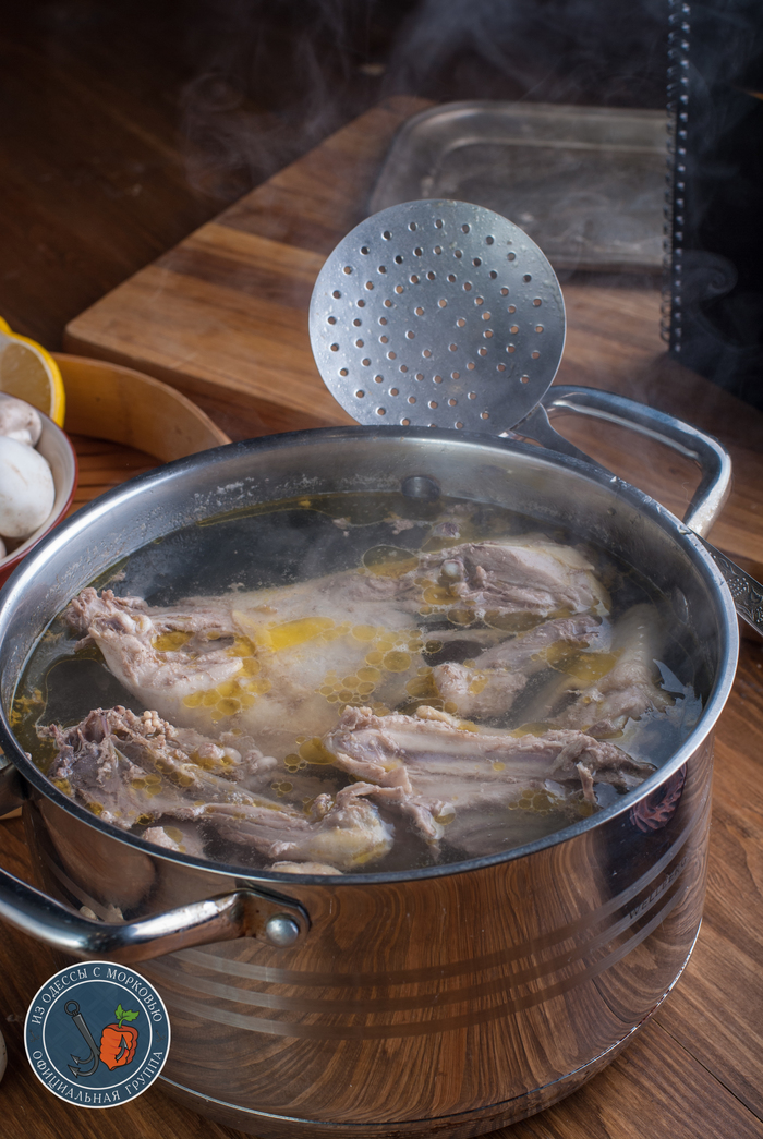 - В первый раз рекомендую из мяса выбрать либо говядину ( с жирком, косточкой), либо утку. Если есть домашние цыплята или молодая курица- супер. Вариант с магазинной курицей мне нравится меньше всего.