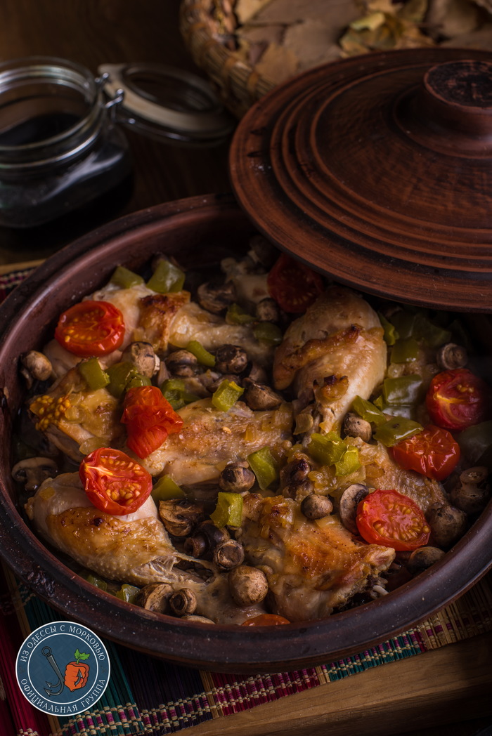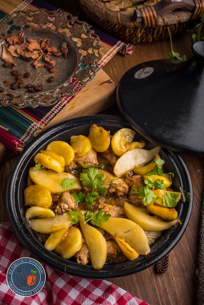 Предлагаю сразу не пугаться – сам Тажин здесь свободно заменяется почти любой формой для запекания, жаростойкой сковородой, жаровней, чугункой и так далее.