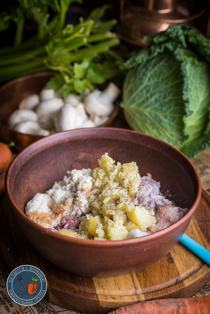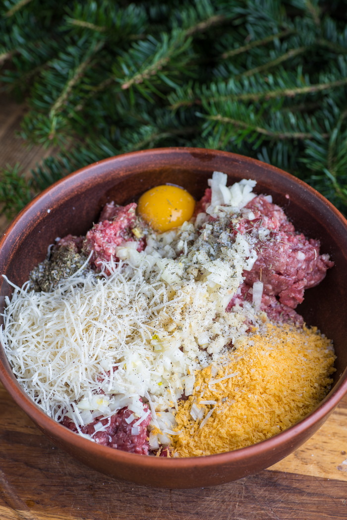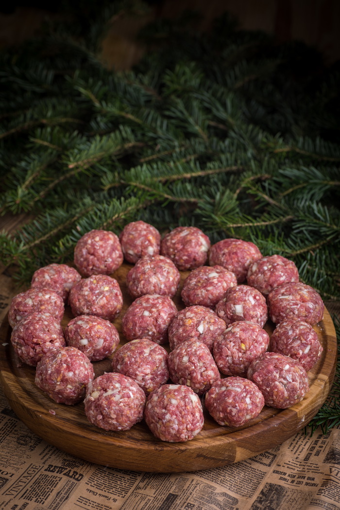 - Мясо: самым популярным есть смесь свинины и говядины. Но если вы захотите сделать из той же индейки, кто ж вам запретит?)