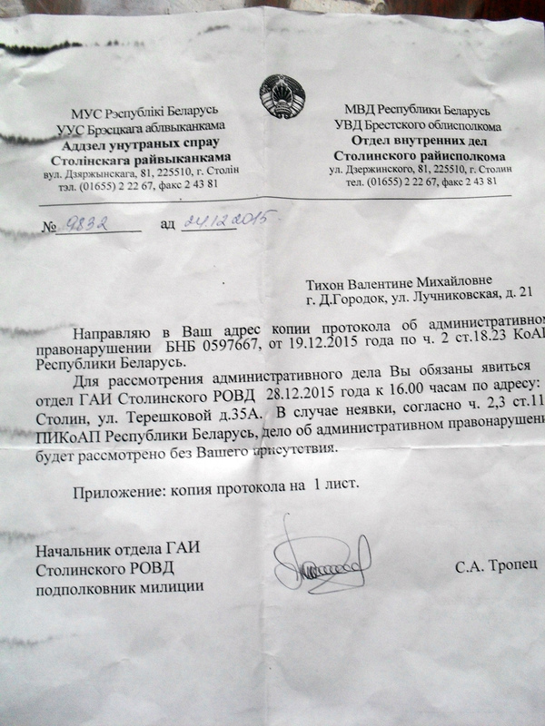 Так вот. Она думала что конфискацией все закончится. Но! 30 числа (!) ей приходит письмо с приглашением в суд на рассмотрение ее дела, назначенного на 28 число этого же месяца. Дальше, 9 числа приходит письмо с решением суда (на которое она не явилась и не предупредила, т.к. она не перемещается во времени)где написано что обжаловать решение она может в течении 10 дней со дня вынесения решения (тут я немного засомневалась, т.к. там написано что есть вариант "с момента получения копии постановления", то есть еще до 19 числа, но мама говорит что ей вроде как сказали что это окончательно, или как-то так) Вообщем прилагаю вам письма с печатями на конвертах (простите за размытость, она фотографировала и присылала по скайпу)