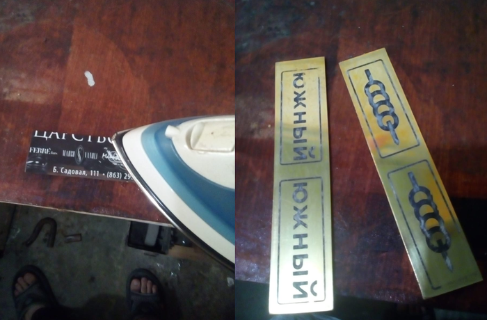 При температуре градусов 28, тонер растекается примерно часа 2, вынимаем бумагу и переносим утюгом на подготовленный металл (а именно он должен быть идеально плоским и шлифованным наждачкой вплоть до 1500грид, обезжирен и без пыли.)