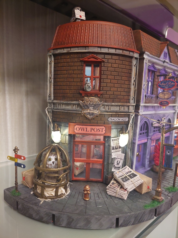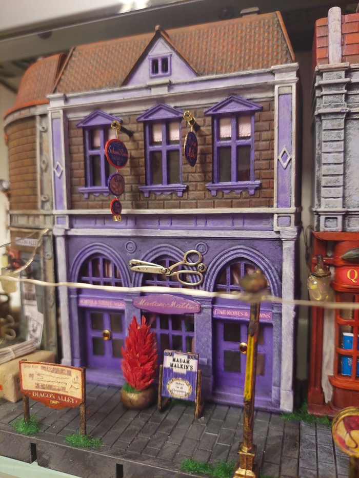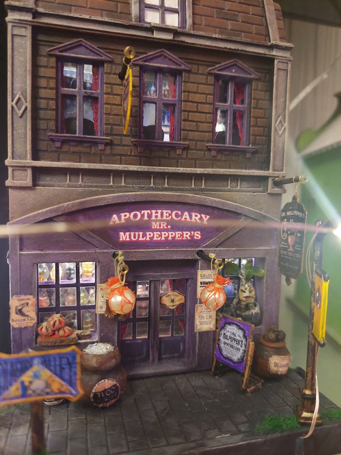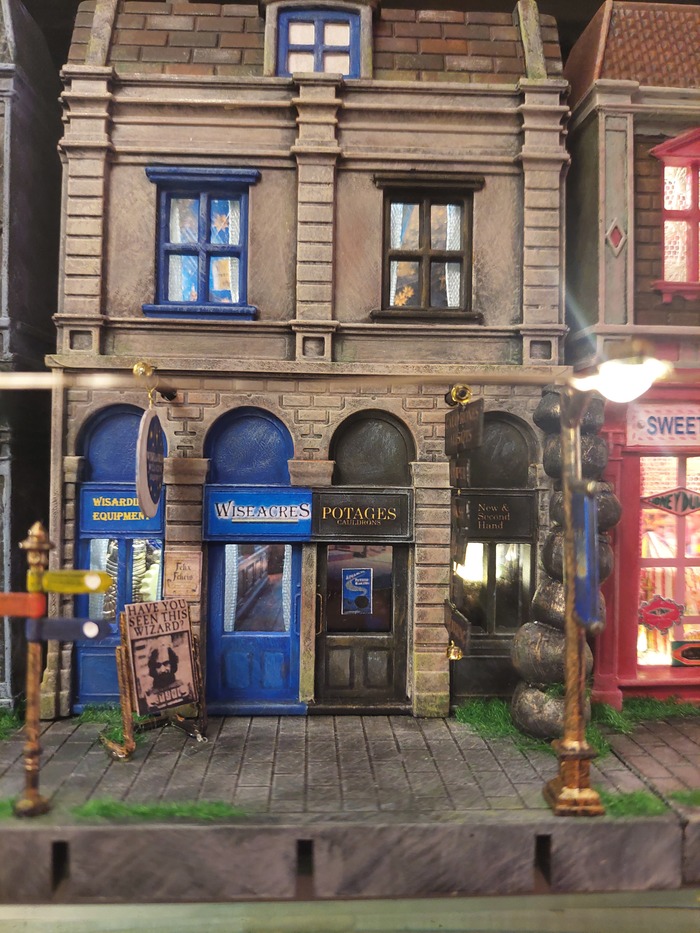Моей мечтой было воплотить частичку мира у себя дома , но всё руки не доходили. И вот осенью прошлого года мне попадается пост талантливой пикабушницы о переделки домиков из фикс прайса в магазинчики Косого переулка , а потом я много раз пересмотрела Видео Ирины, автора идеи волшебного перевоплощения домиков. Оказалось, что при должном терпении и наличия прямых рук, сделать себе такое вполне возможно и не сильно затратно. Я загорелась этой идеей, во что бы то не стало сделать так же! Не спала пол ночи и на следующий день мной были куплены все домики в ближайшем фикс прайсе. Надо сказать, что работала над домиками я не спеша. Это было очень интересно, в голове постоянно играла музыка из заставки к фильму. Над каждым домиком много думала, часами искала и рассматривала референсы в интернете. Какие-то материалы взяла у Ирины, но много пришлось делась самой в фотошопе. Сегодня решила поделиться с вами что у меня получилось. Гайд по переделке домиков прекрассно описан у Ирины в блоге на ютубе. Я же покажу свой конечный результат: