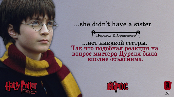 Напомню, что мы смотрим на перевод «Гарри Поттера и Философсого камня», выполненный И.Оранским по заказу издательства "Росмэн". Итак, не будем откладывать исследование в долгий ящик, а сразу же приступим к делу.