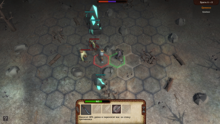 Навыки в игре это своего рода карточки, которые можно вставить в подходящее оружие. Например, кровотечение в кинжал или круговой удар в посох. Одни приёмы могут усилять другие, вторые успешнее воздействовать на бронированные цели, третьи влиять на состояние врагов, их местоположение или наносить урон по площади. Поэтому ключом к успеху становится планирование действий на несколько движений вперёд.