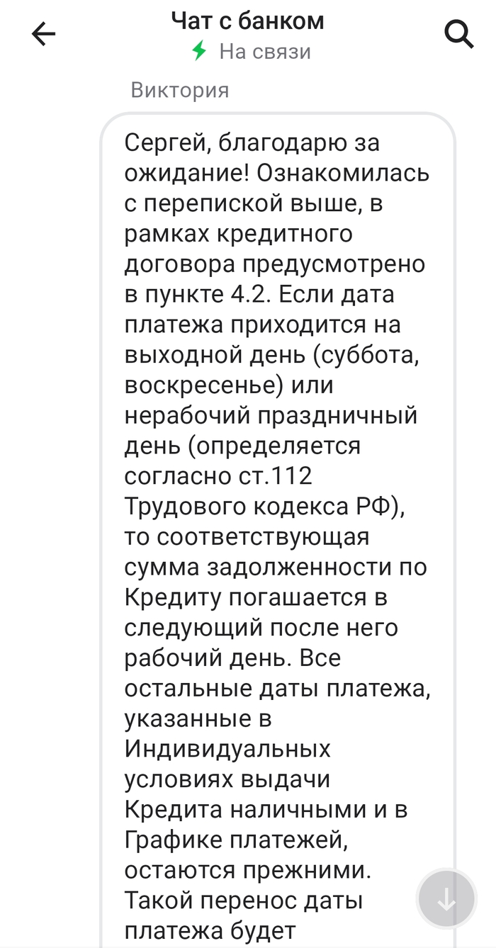 интересный факт, в любимых мной(нет) тинькоф и втб тоже платежи выпадают на праздничное 2е число. И оба они просто переносят платёж, не начисляя какие-то дополнительные проценты. А в тинькоф вообще кредитная карта, а не кредит.