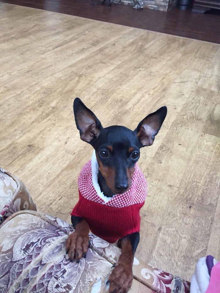 Порода цвергпинчер, сука (клеймо, чипа нет, очень маленькая, брак по карликовости).