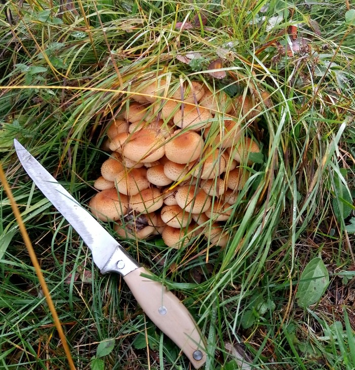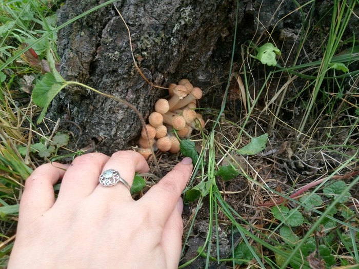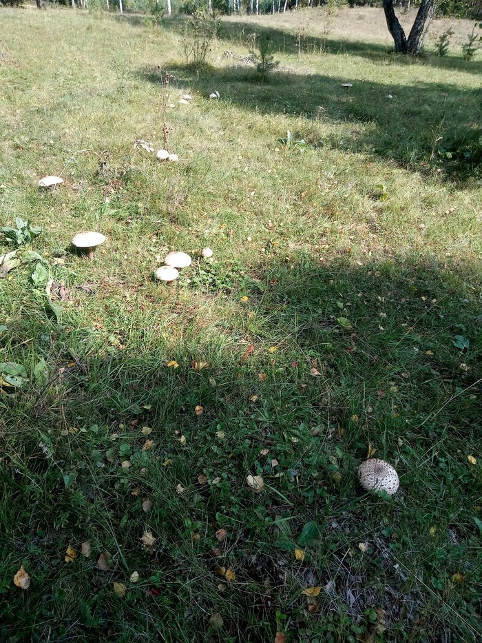 Ближе часам к 9 туман и холод прошли, выглянуло солнышко, а мы наткнулись на полянку зонтиков, говорят из их ножек восхитительная икра, что ж попробуем.