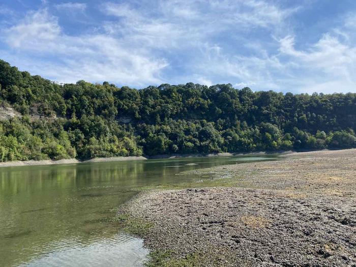 Я вот читаю, что в Европе засуха. Ну ничего, Украина - тоже ж Европа). Короче удалось мне на рыбалку вырваться в кои то веки, и... и я ОХРЕНЕЛ. Для понимания - деревья слева - это, обычно, береговая линия...