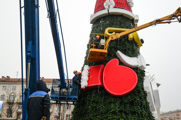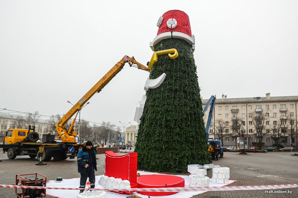— Почему такой необычный вид? Был объявлен конкурс среди детей, как они видят елку своей мечты. Победивший рисунок взяли за основу и разработали оригинальный дизайн, — рассказала Onliner.by Оксана Волкова, замглавы администрации Советского района Минска. — Торжественное открытие елки — в эту пятницу. Будет небольшой праздник, детские конкурсы.