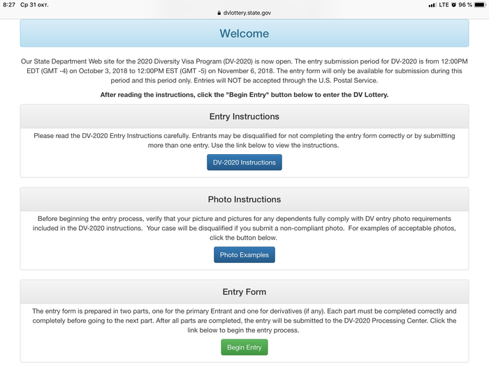 Начать стоит с официального сайта лотереи, www.dvlottery.state.gov