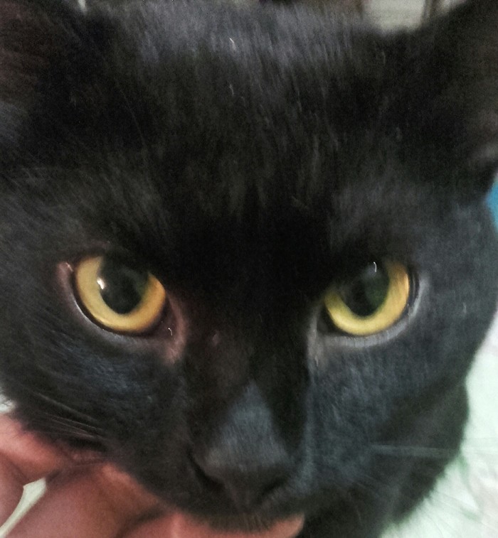 Черному хрену год с небольшим.За свою непродолжительную жизнь демон уже дрался на даче с тремя собаками:отбивался как воин,вместе с подоспевшим на помощь кожаным рабом,преодолевшим грядки в одних носках!Любит смотреть людям исключительно в душу..
