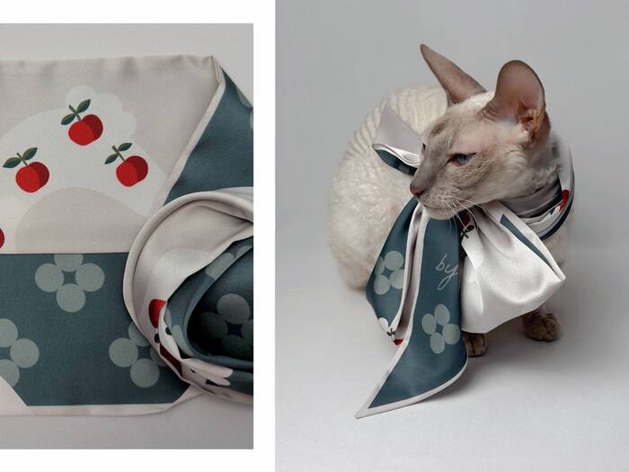 И самое главное - она первая примеряет все новинки. Иногда я уверена, что придумала идеальный платочек… Если котёнок шикарен - значит, готово, можно показывать вам.