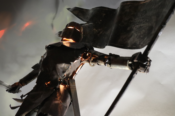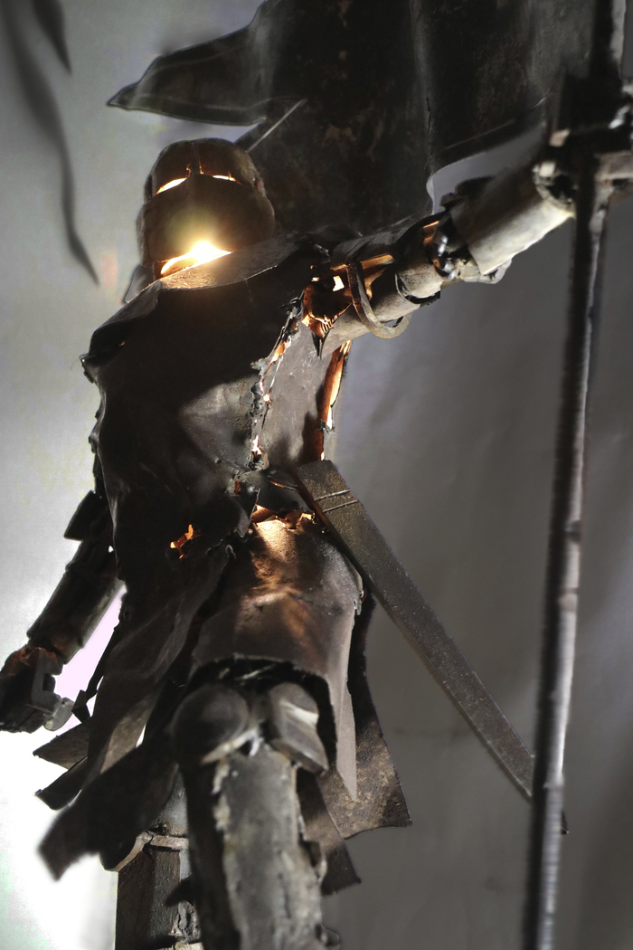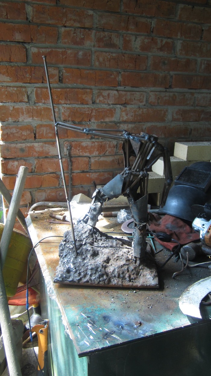 Так же я пытался передать образ через "ржавую" фактуру, которую специально травил солью.