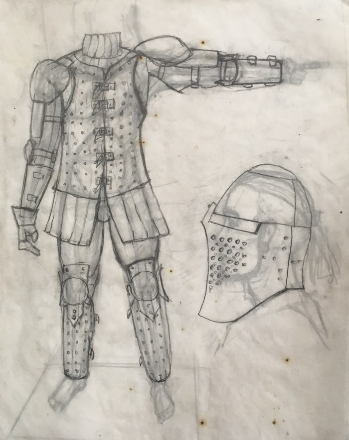 Потом я в три этапа стилизовал свой доспех, используя кальку.