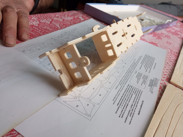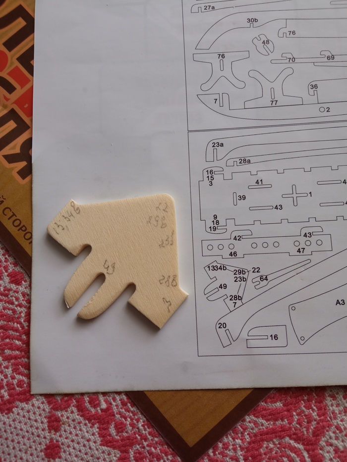 Открываем конструктор и видим, что детальки сделаны штамповкой UPD #comment_196813019. В некоторых местах детали цеплялись за фанерку, поэтому детали пришлось подгонять наждачной бумагой.