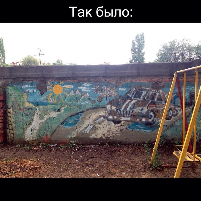 Однажды, в конце лета ко мне в личку постучался Энгельсский фотограф Илья Репин с постом о том, что есть две стены, которые можно разрисовать (Старые рисунки потускнели, ибо были сделаны около 14 лет назад) . Конкретнее, это боковые стены гаражей, которые выходили на детскую площадку. Так как все обсудили с хозяевами гаражей и они дали добро, я решила не терять возможности повозить кисточкой по стене, в относительно людном месте и не получить за это по голове.