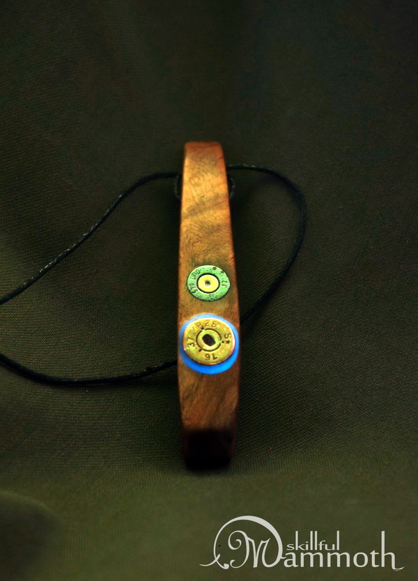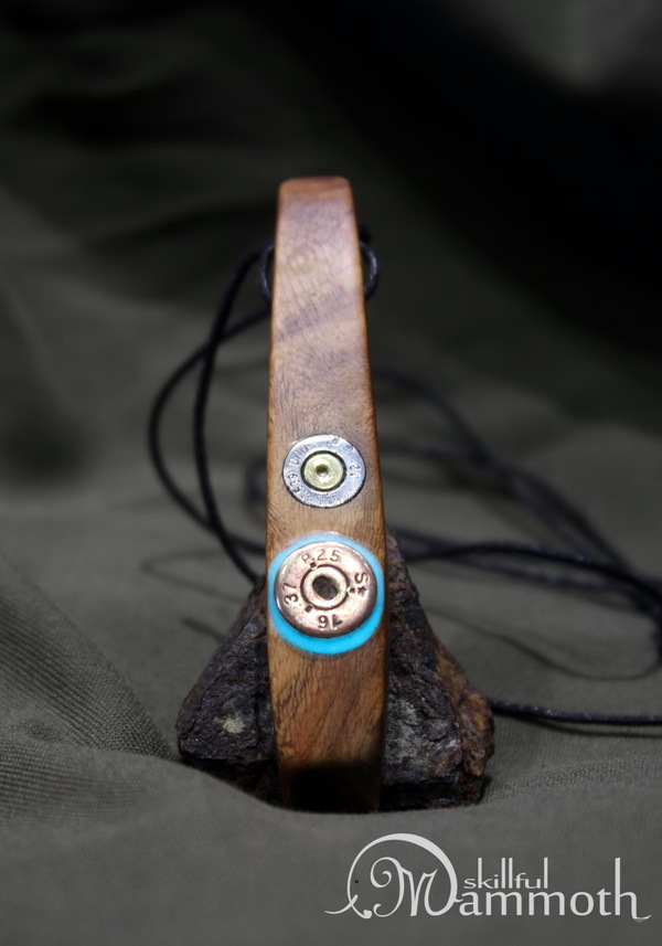 Кратенько ТТХ: мундштук сделан из медной трубки, гильзы от Мосинки, образца 42 года и кусочка Эбони (по-моему). Подставка из поршня от хрензнаеткакого движка и кусочка можжевельника (точно). Пропитано смесью эфирных масел чайного дерева и лимона (загубник) и можжевела (подставка) и полировано.