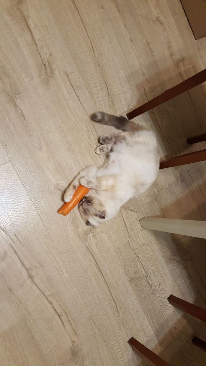Кошка регулярно устраивает такое непотребство, если добирается до морковки. Вроде кормим нормально, не голодает. У кого еще так?