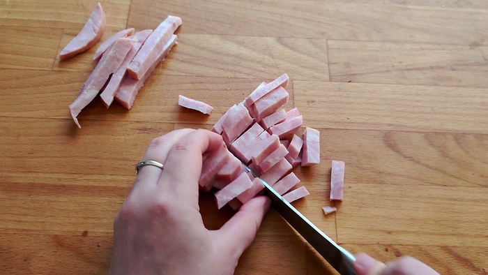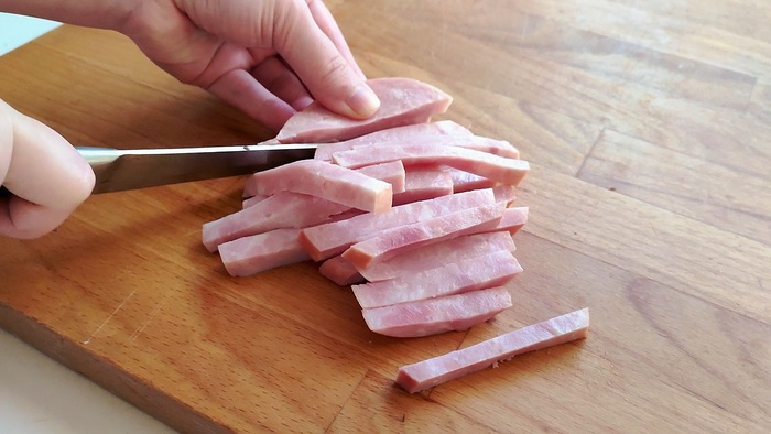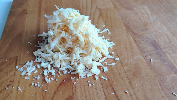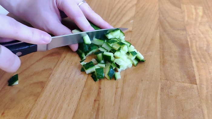1. Подготовить начинку - сыр натереть, маринованные огурчики мелко нарезать.