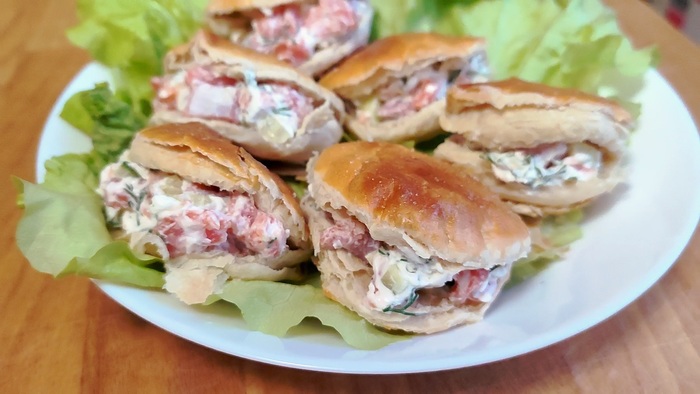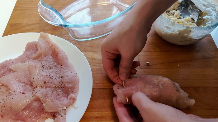 4. Сформировать рулетики, закрепляя края по необходимости зубочистками.
