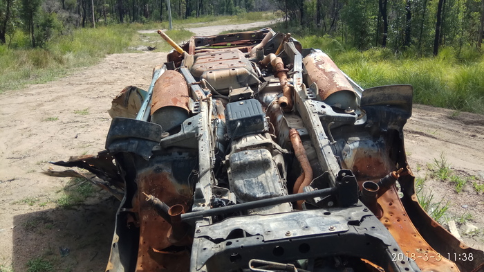 Данное авто было брошено прям перед болотцем, на которое мы никак не рассчитывали - пришлось обходить стороной - немного запачкались горельником от эвкалипта.