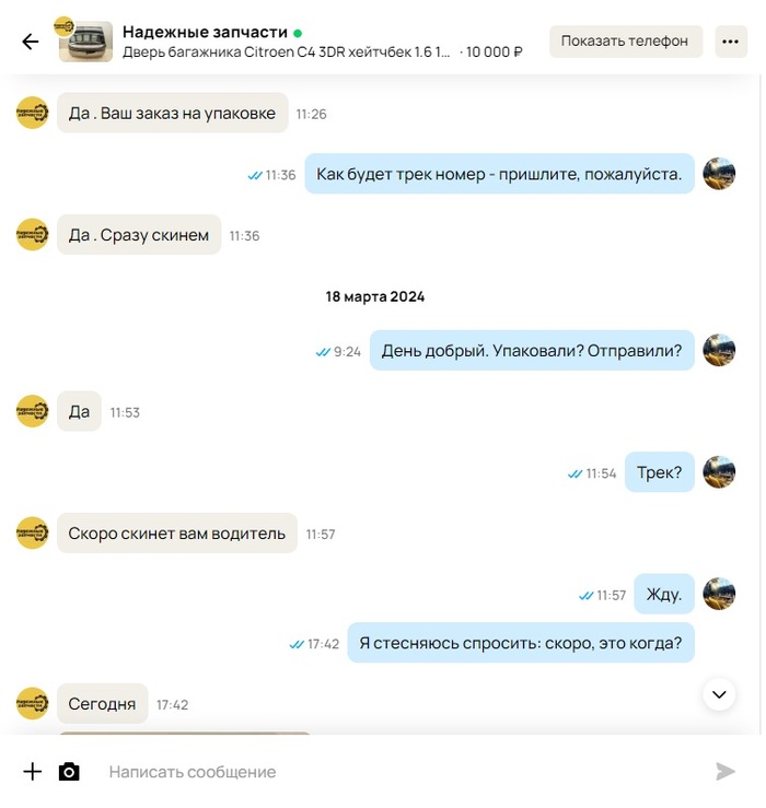 А теперь серьезно. Что делать с этим не знаю. Вроде и сумма не большая, но и не маленькая. Подавать в суд тоже вроде смешно, а человека продавана наказать всё же хочется. Если есть идеи, то поделитесь, пожалуйста. Всегда благодарен умным мыслям! Пичалько в том, что мне, блин, нужны эти запчасти!!! Из всей ситуации можно было выйти без споров и конфликтов. Просто извиниться и отправить мне нужное. А я бы отправил то, что мне пришло от них.