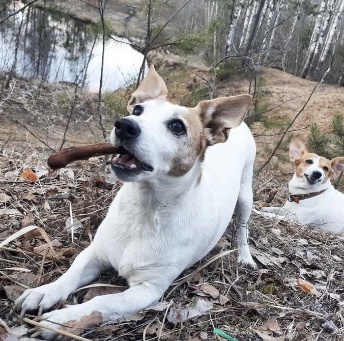 Мне неоднократно удавалось вовремя выхватить телефон и поснимать. В одном из видео я закрепила телефон за корягу и отошла. Никто не поверил в то, что Валька попытается его спереть, но он полностью оправдал мои ожидания ))