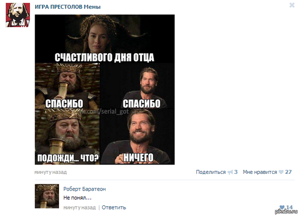 95 CaBocuk Маленький сюрприз 11 лет назад Возможны спойлеры. Спойлер Игра престолов ВКонтакте ИП ПЛИО Плип