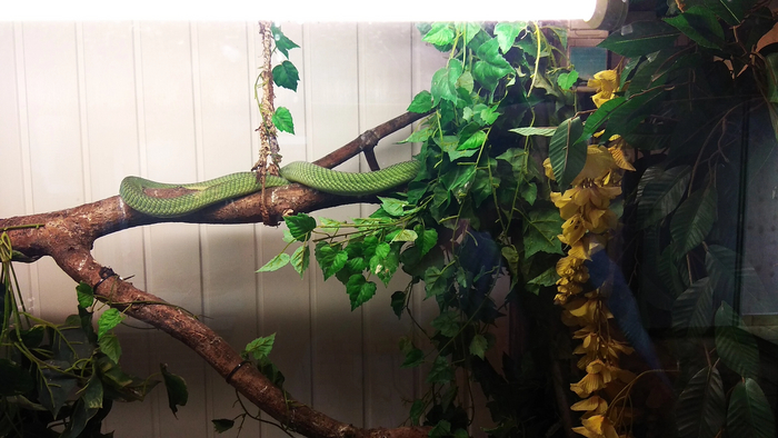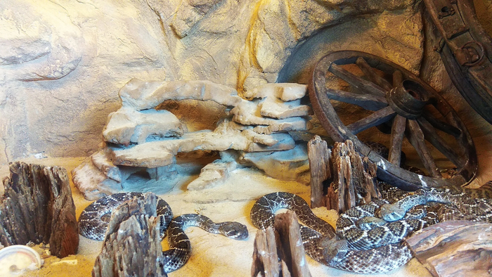 Занесло как-то на змеиную ферму (shlangenfarm) в глубинке Германии. Владелец (ниже на фото) какой-то сумасшедший в плане змей человек, рекордсмен: сидел в закрытой клетке со змеями месяцами, ловил их по миру, потом открыл это заведение. Очень увлеченно рассказывал о своих питомцах и приключениях, с ними связанных. Естественно, был кусан неоднократно. Кроме разных видов змей там ещё живут всякие гады: пауки, тараканы, крокодил Хасан (самка), пираньи. Можно подержать неопасную змейку в руках. P.s.вход стоил не очень дорого, правда на входе ходили сотрудники с собакой и искали сбежавшую змею