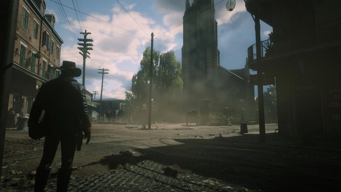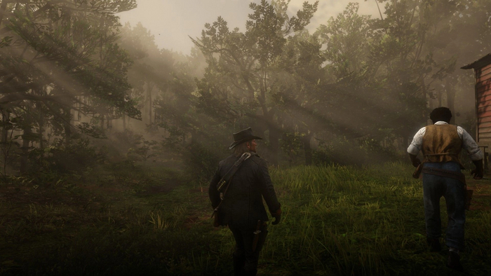 Игра света и тени как в природе так и от искусственного освещения. Одна и та же локация выглядит совершенно по-разному в зависимости от того днём это или ночью, есть ли тучи и дождь или погода ясная, есть ли электрические источники освещения или факелы. В общем, слава рокстарам, надеюсь эту планку они будут поддерживать и в последующих играх.