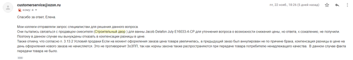 В сообщениях также говорили, что поставщик такой-сякой не отвечает на сообщения им и поэтому они не могут вернуть цену. А вот если я снова перезакажу товар, то все нормально, поставщик хороший.