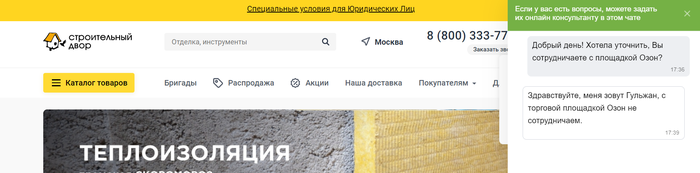 Тут я решила узнать что это за Строительный двор такой, который с самой площадкой общаться не хочет. Я нашла их сайт, написала им в поддержку и они мне ответили, что они не сотрудничают с Озон.