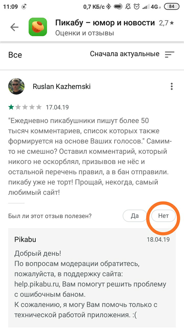 И собственно мой вопрос таков: а что если всем, кому глубоко плевать на "бунт" и кто за честную оценку приложения, зайти в Play Market и всем отзывам еденичкам поставить признак "этот отзыв не был полезен"?