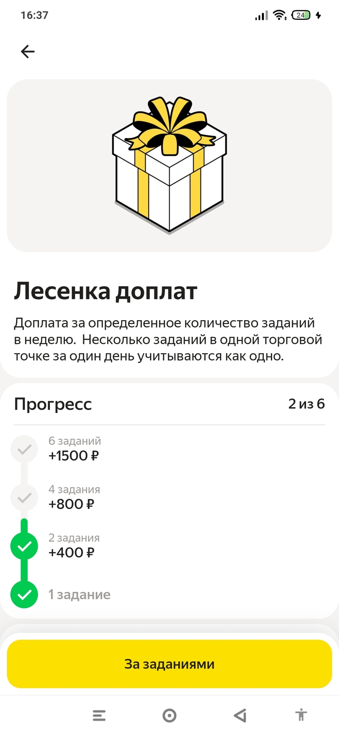 Второй бонус это лесенка доплат как вы видите она у меня не завершена.У меня есть основная работа поэтому я не могу выходить часто. Но для какого нибудь студента на каникулах это идеальный вариант. Лесенка обновляется каждую неделю. Нужно выполнить 6 заданий подряд. И за это вы получите 1500 сверху помимо платы за задания.
