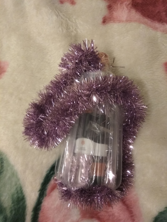 Конечно за месяц из вскрытой коробки таинственным образом пропали все конфеты! Но осталось еще много чего интересного и даже вкусного. И первое, за сохранность чего Снегурочка особо переживала, бутылка.