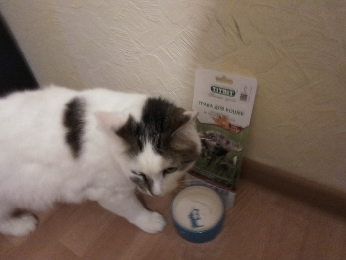 Но это еще не все подарки! Есть же еще кот. Для кота была шикарная плошка и не менее шикарная грядка.