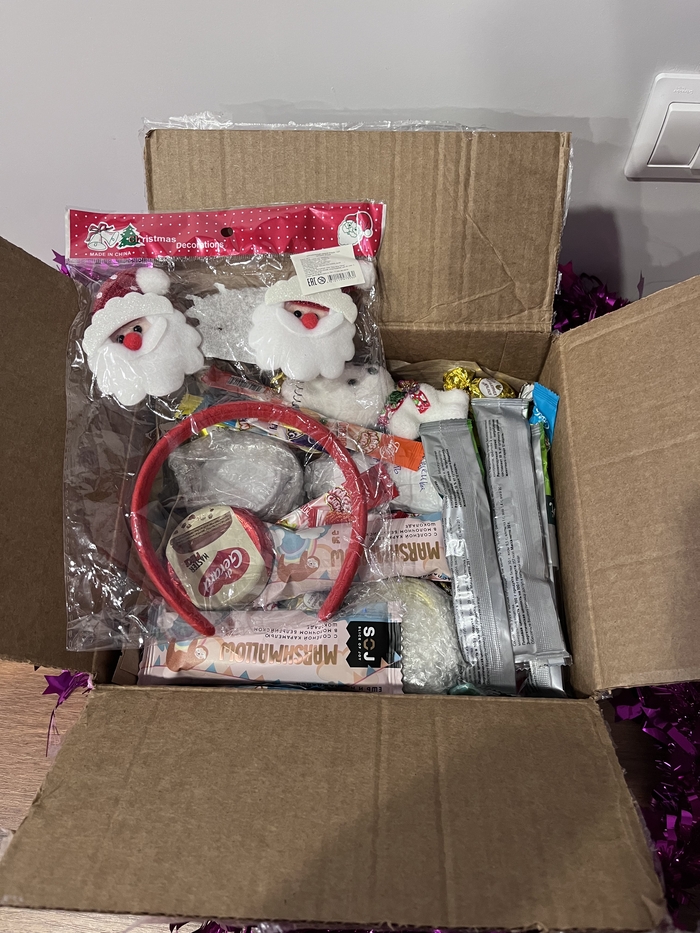 И новогодние игрушки, гора сладостей на любой вкус, книга с закладкой, календарь, ободочек и даже пятнашки ( это те которые один летсплейщик с ютуба ненавидит))))