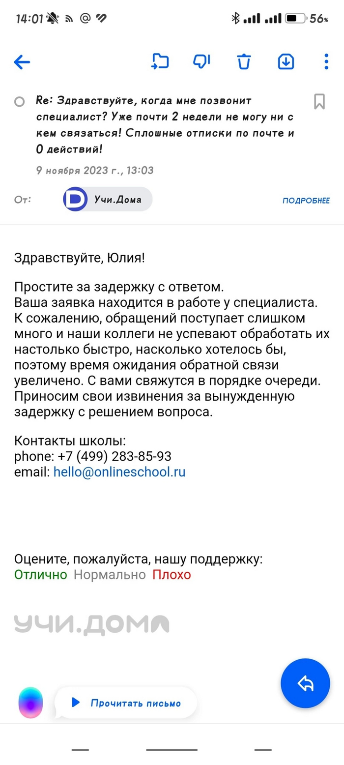 Жена решила взять онлайн репетитора для дочери на платформе учи ру. В начале были активные дозвоны с организационными вопросами, после оплаты игнор.