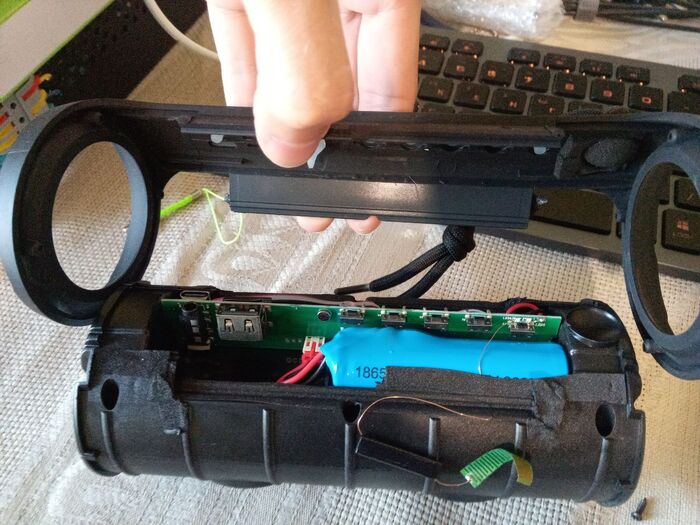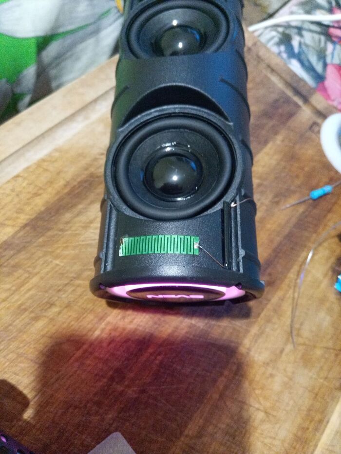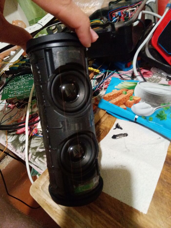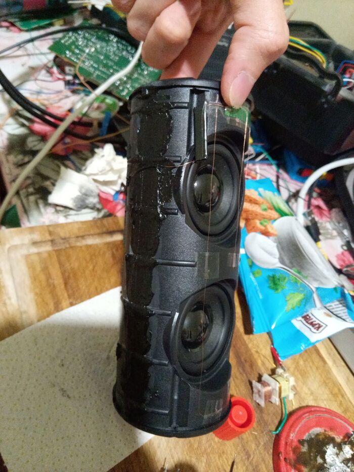 Колонка не герметизирована никАк, поэтому я ее залепил герметиком со всех щелей и удлинил антену-(радио) на фото. У этой колонки нет низких басов в виду конструктива и самих динамиков.
