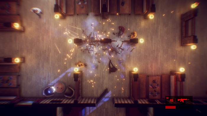 Или есть вариант расширить игру. Добавить несколько механик (с прострелами стен), интерактивных предметов (банально взрывающиеся бочки или трубы с газом), возможно добавить стелс или оружие ближнего боя. Простор для расширения игры, как мне кажется — огромен. Разработчики могли бы дать возможность сообществу создавать пользовательские уровни, что тоже бы однозначно положительно сказалось бы на игре.