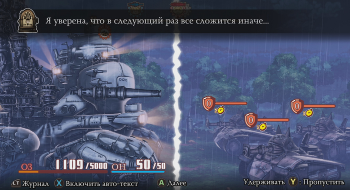 В общем, геймлей довольно интересный. Если вы играли в jRPG или пошаговые тактики, то освоите его без особых проблем. Игрокам, не знакомым с этими жанрами придётся в некоторых боях хорошенько продумать стратегию и возможно несколько раз вернуться к контрольной точке. Лично для меня, большинство боёв проходили нормально, лишь некоторые сражения с элитными противниками показались «душными» из-за огромного количества здоровья у врагов.
