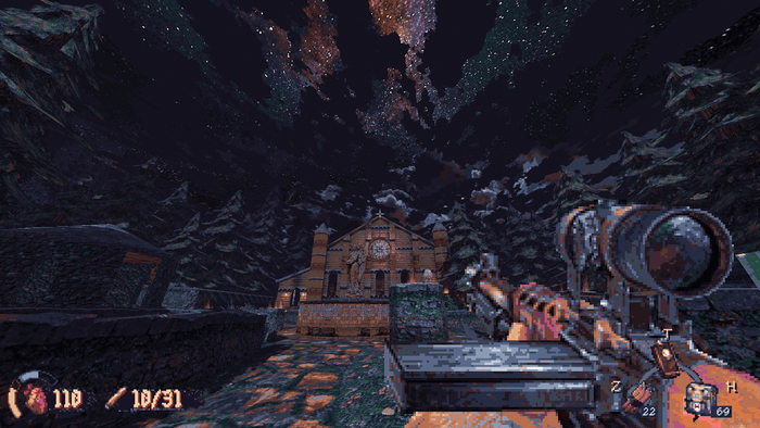 Последняя игра в этой подборке хороших ретро-шутеров - Cultic. Графически игра представляет из себя смесь всевозможных стилей: 2д, 3д, лоу поли, пиксельарт и воксели. Необычная графика добавляет атмосферности. По сюжету мы должны разрушить магический культ. Геймплей менее динамичный, чем в Doom. Враги стреляют точно и больно. Цена ошибки высока. Имеется большой выбор оружия и, конечно же, его прокачка.