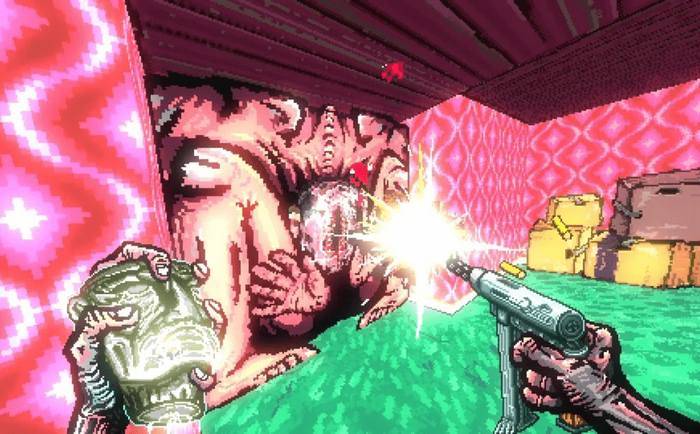 Графика, а точнее ее реализация и художественный стиль. Сочные анимации, реки крови и большой арсенал брутального оружия, после выстрела которого, любой противник разлетается на части. Эта составляющая для ретро-шутеров крайне важна. Ведь в первую очередь мы воспринимаем проект глазами, а уже потом доходит все остальное. Зачастую в таких проектах применяется псевдо 3д графика, состоящая только из 2д спрайтов, или же смесь 3д и 2д.