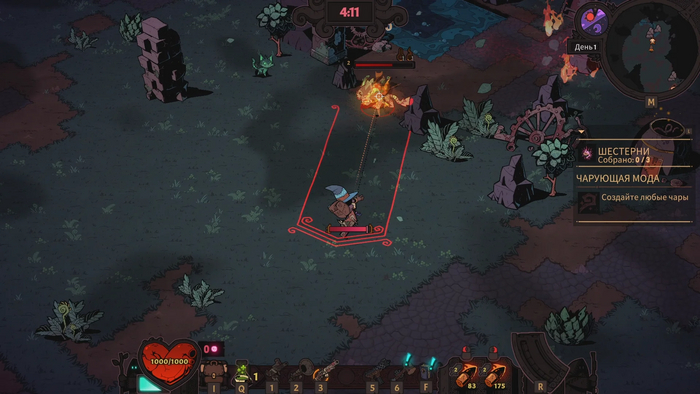 Кроме ураганных сражений игрокам предстоит обустроить свою магическую башню, прокачивать героя, изготавливать новые виды оружия и снаряжения. Отдельно стоит рассказать про производство магических пуль, которые дадут разнообразные полезные эффекты на оружие и смогут даже влиять на тактику прохождения уровней.