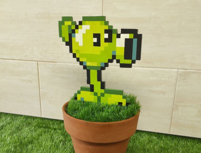 Осенью 2022 года, пересматривая трейлеры моей любимой игры Plants vs Zombies, я увидел, как Крэйзи Дейв (главный герой) вытаскивает растения в горшочках во двор для защиты от зомби. Скажу честно, всегда мечтал о таких растениях, чтобы они стояли у меня на подоконнике и радовали глаз. Найдя человека на платформе Etsy, который создавал растения из термомозаики и пластиковых горшочков, я понял, что могу сделать что-то лучше, используя дерево (люблю материал за его текстуру) и глиняные горшочки.